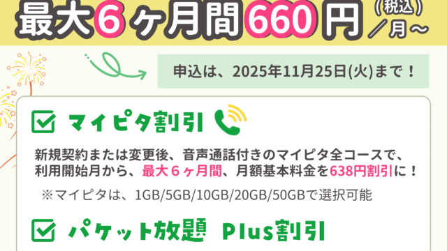今なら「マイピタ割」と「パケ放題Plus」を …