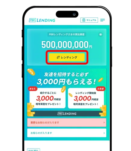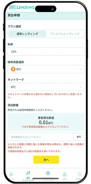 - 「通常レンディング」または「プレミアムレンディング」を選択