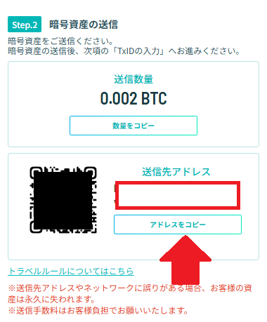 入力先を間違えると暗号資産が消える可能性があるので、コピペで!