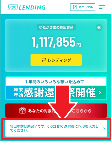 PBRレンディングにTxIDを貼り付けて送信をすることで暗号資産の貸し出しができるようになります。