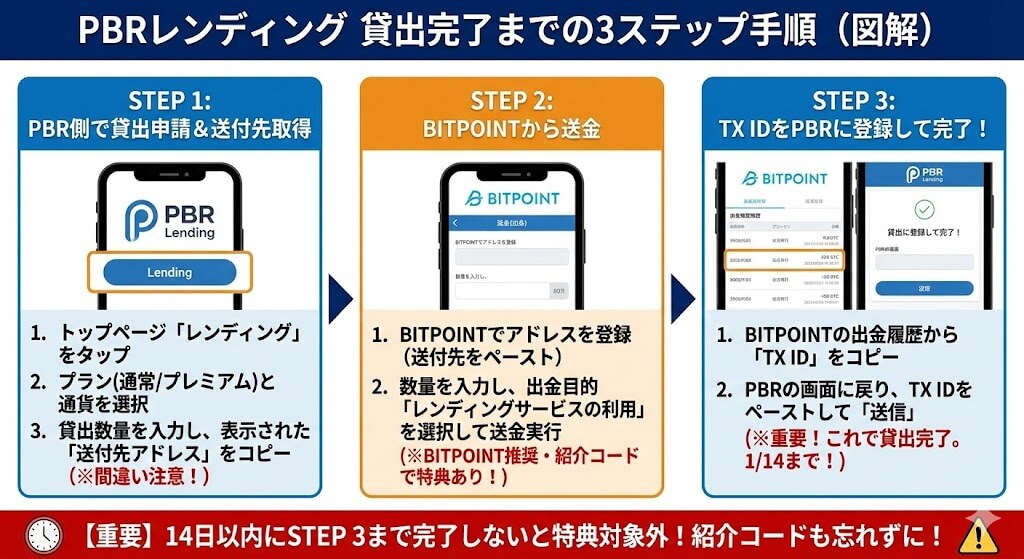 PBRレンディングにTxIDを貼り付けて送信をすることで暗号資産の貸し出しができるようになります。