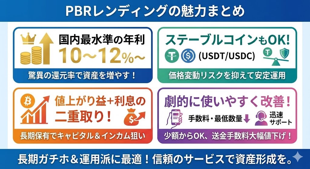 同様の暗号資産レンディングサービスではBitLendingもありますが、利率はPBRレンディングのほうが優れています。