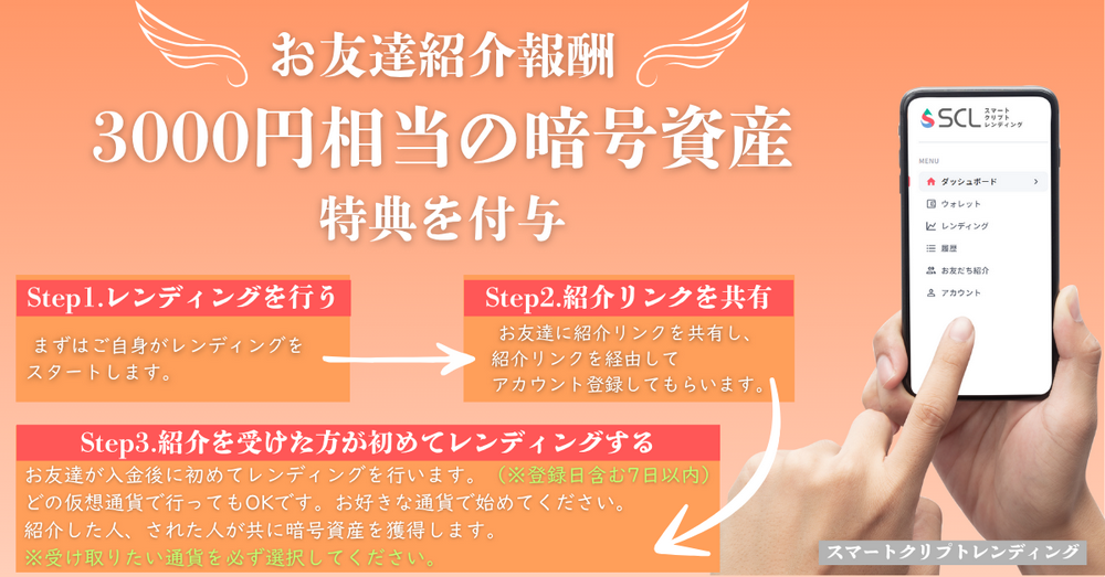紹介した方(あなた)、された方(お友だち)にそれぞれ3,000円相当の暗号資産