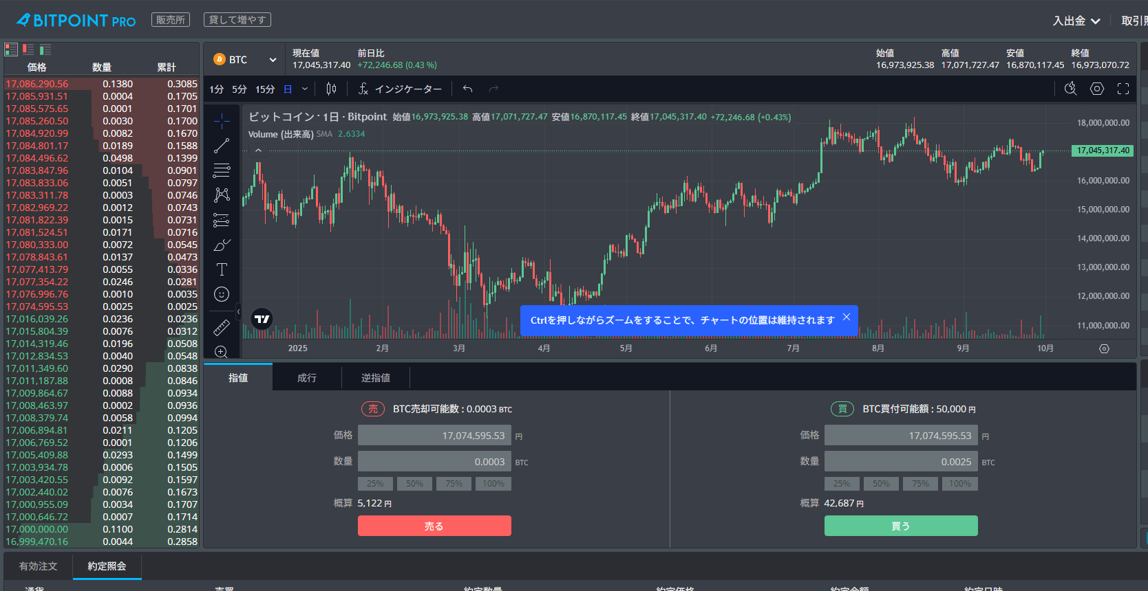PC版専用機能でBITPOINTPROという取引所機能があります。