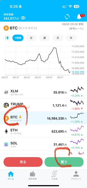 ホーム>BTC>買うを押すと購入画面に遷移します。