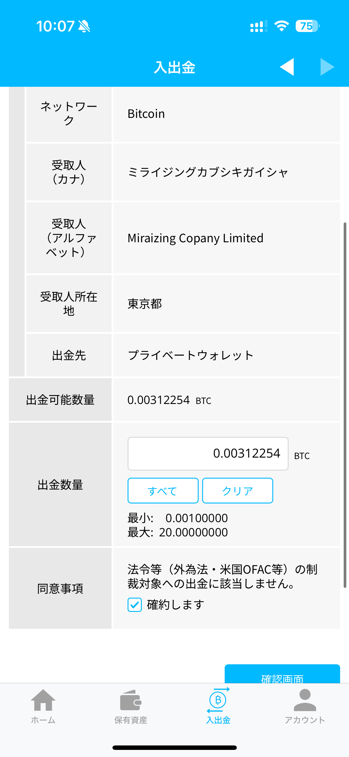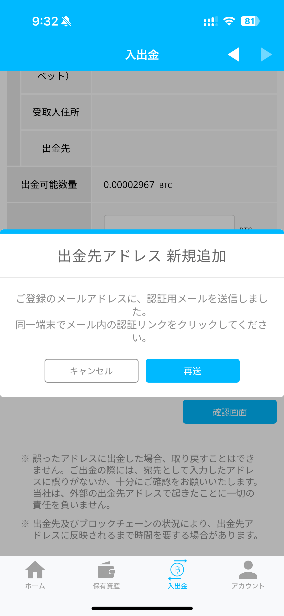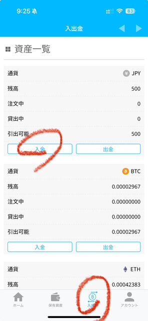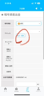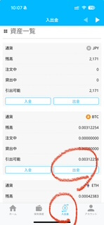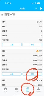 - 入出金から保有してる暗号資産の「出金」をタップ