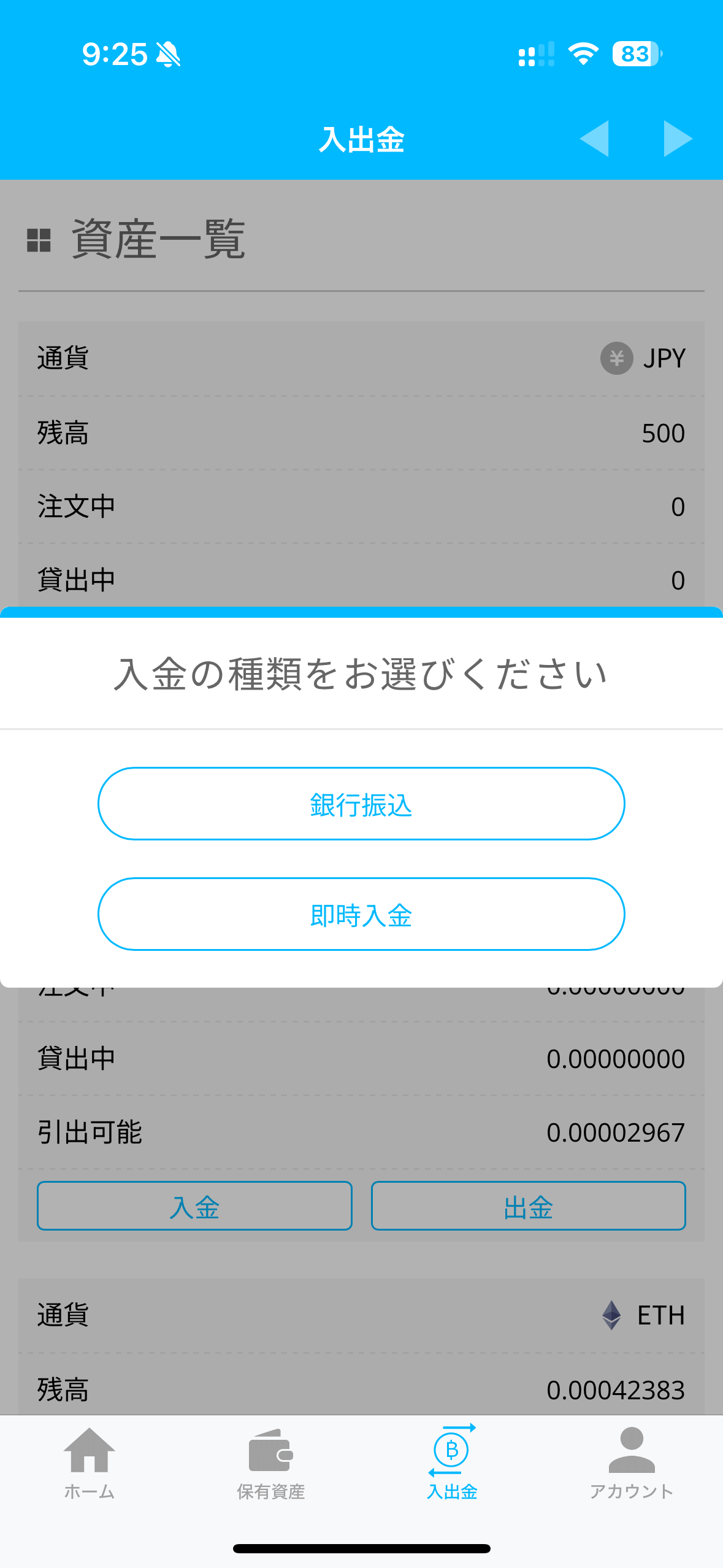 即時入金はPayPay銀行と住信SBIネット銀行に対応しており、すぐに入金。すぐに取引をすることができます。