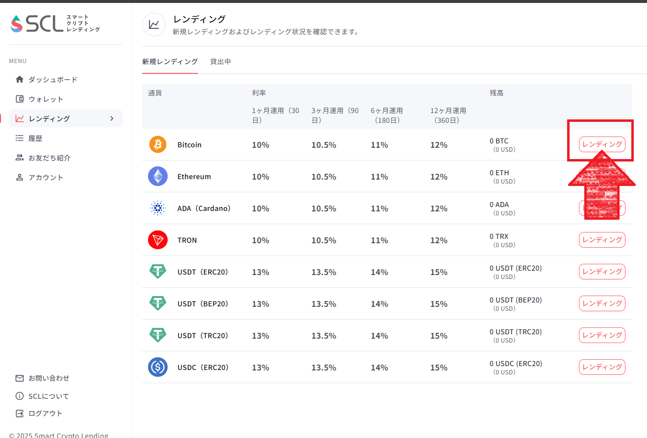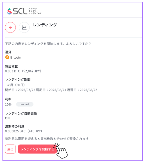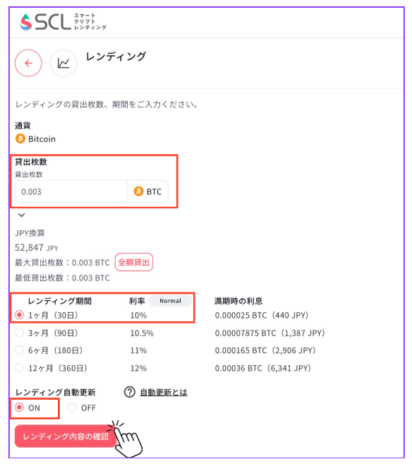 スマートクリプトレンディングでのBTCでのレンディング手順解説