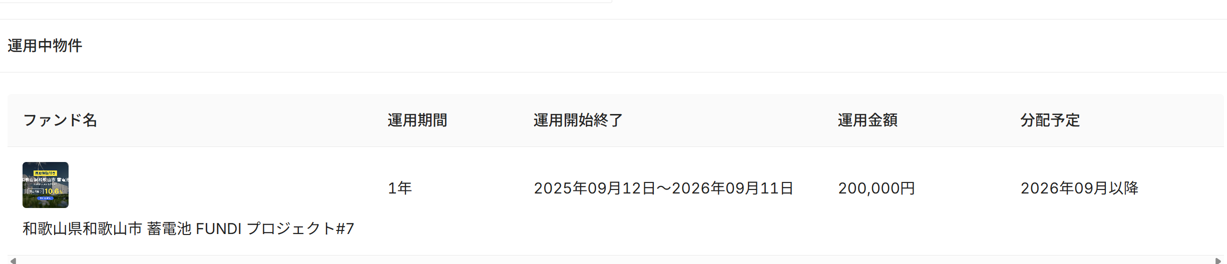 筆者は別案件にてFUNDIの7号案件「蓄電池」に20万円投資中です。
