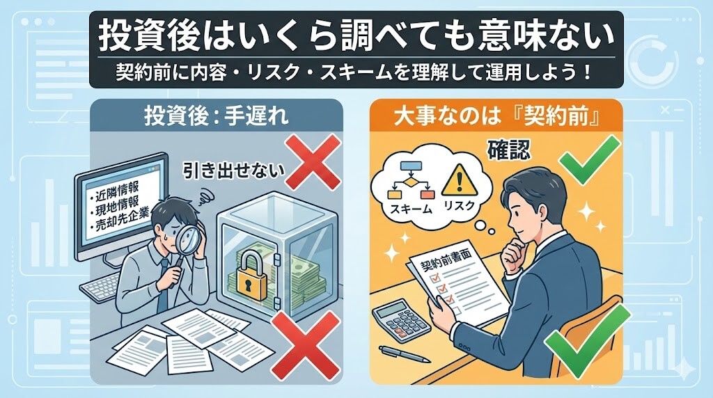 契約前に内容やシミュレーションや想定されるリスクを考えて大切なお金を運用するようにしましょう。