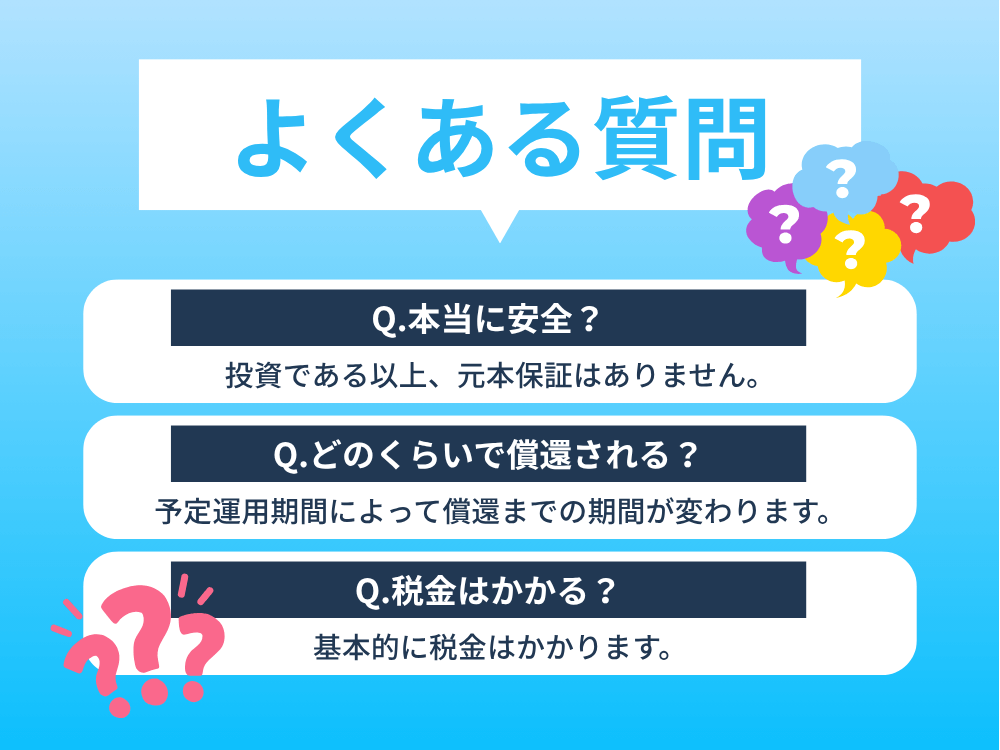 A.投資である以上、元本保証はありません。借り手が返済できなくなった場合は元本毀損のリスクがあります。