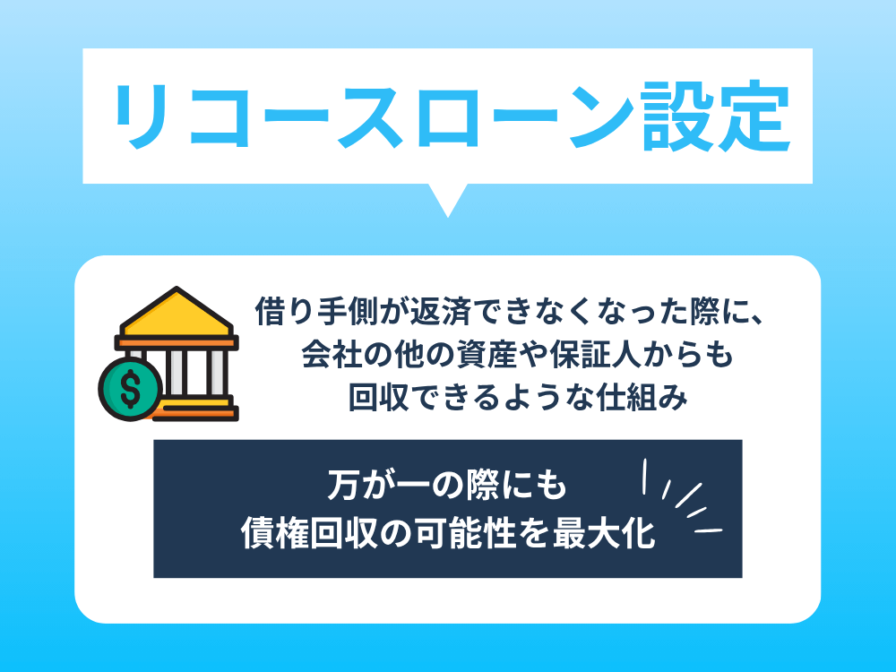 借り手側が返済できなくなった際に、会社の他の資産や保証人からも回収できるような仕組みのことです。
