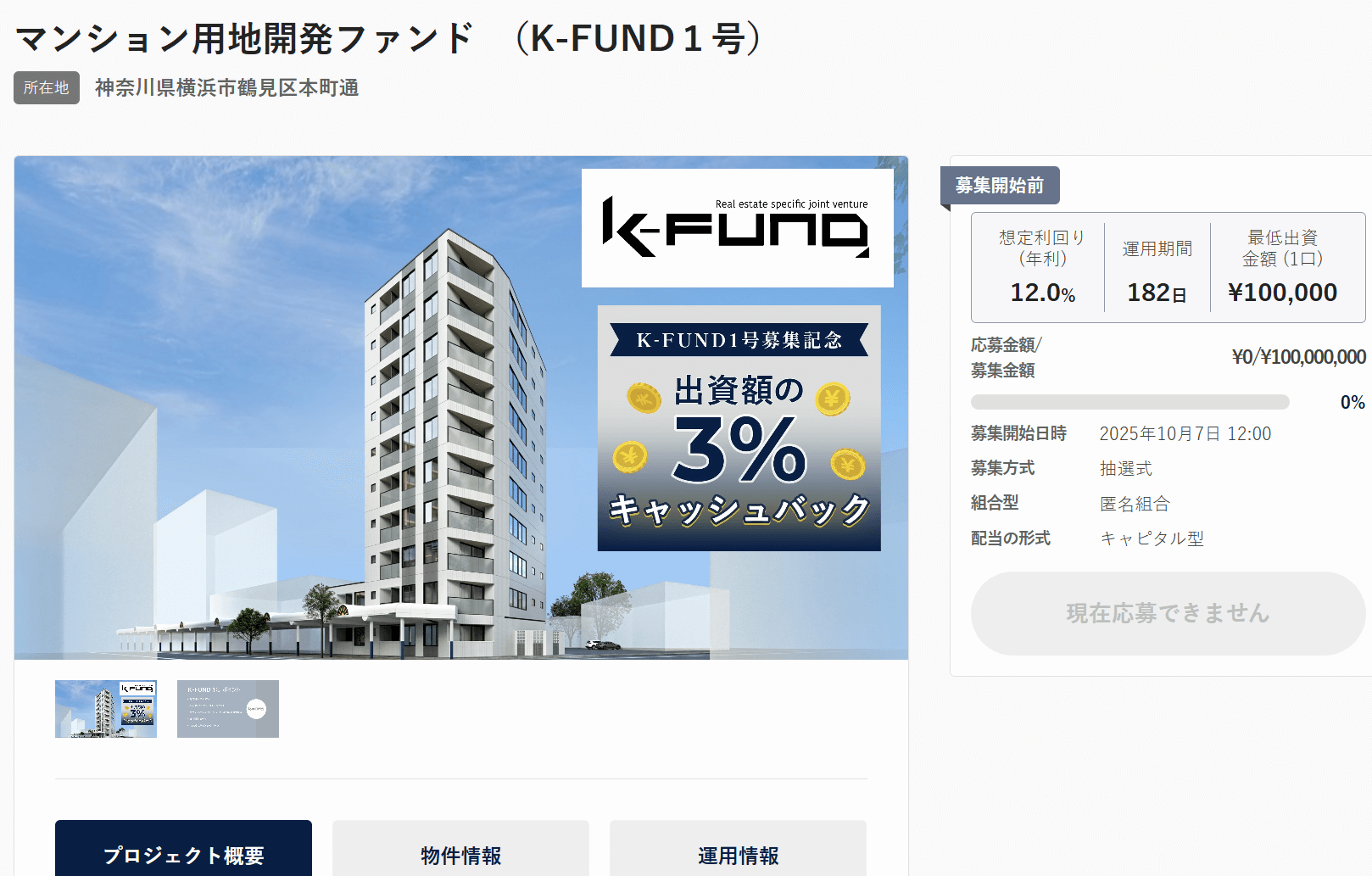 通常の売買契約締結済みファンドとかと違うので注意。(ちなみに売買契約締結済みでも超高額の手付金を支払いすれば売買契約を破棄することが可能、レベチーのニセコ案件など)