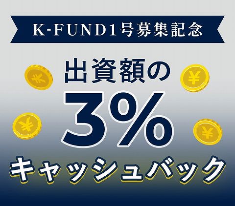 画像引用元:K-FUND公式サイオープニングキャンペーンということで、投資金額に応じて3%キャッシュバックという特典がつきます。