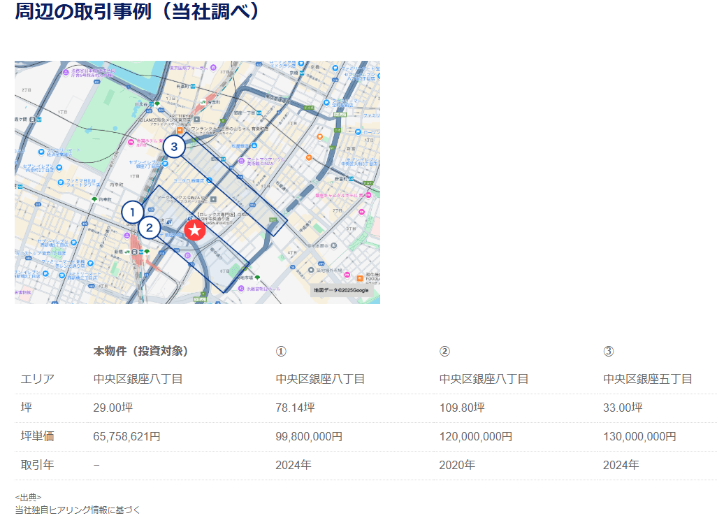 <出資合計8.8億円(優先+劣後)÷ 土地20.48坪(建物価格は除外して単純な土地価格)≒ 約4300万円>