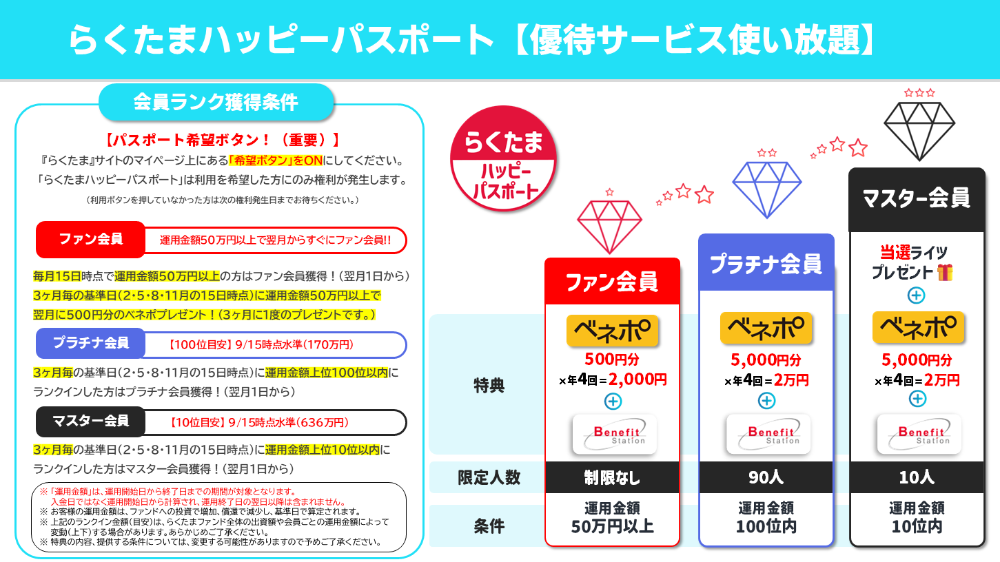 らくたまでは投資金額に応じてランクがつく制度あります。