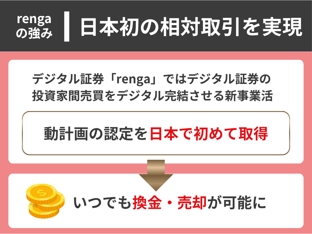 「renga」ではデジタル証券の投資家間売買をデジタル完結させる新事業活