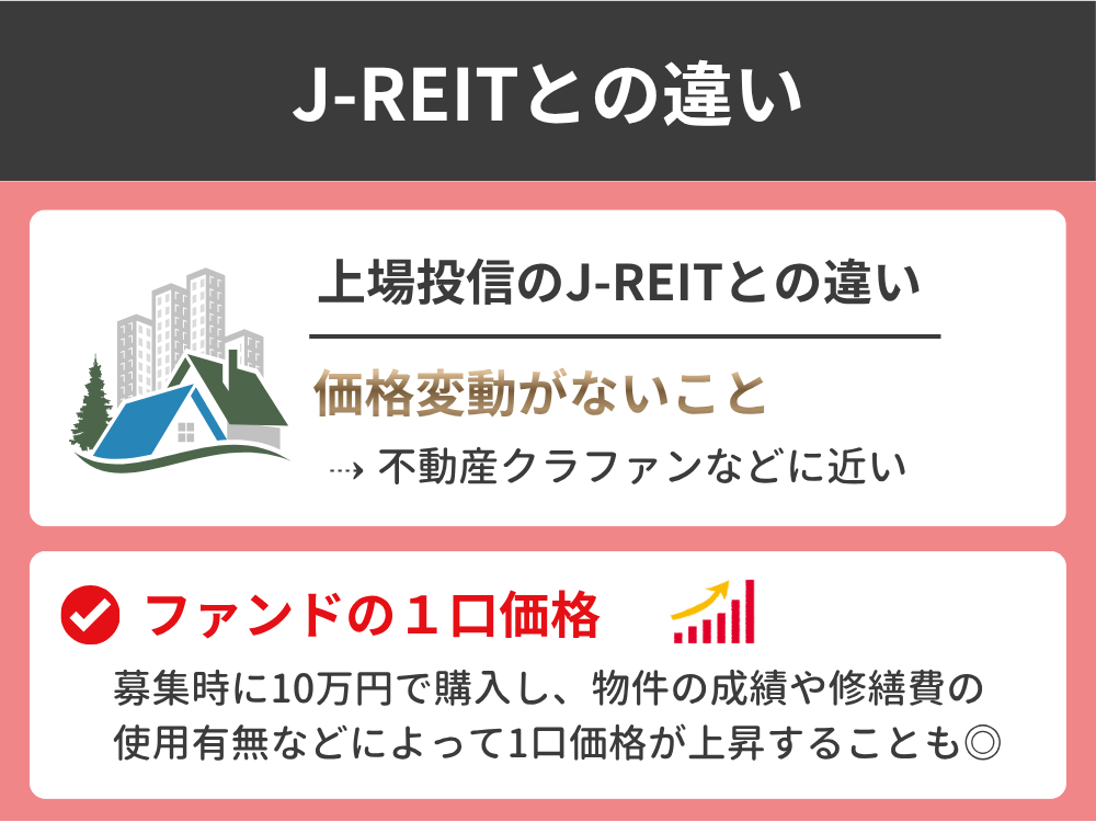上場投信のJ-REITとの違いとしては価格変動がないことです。