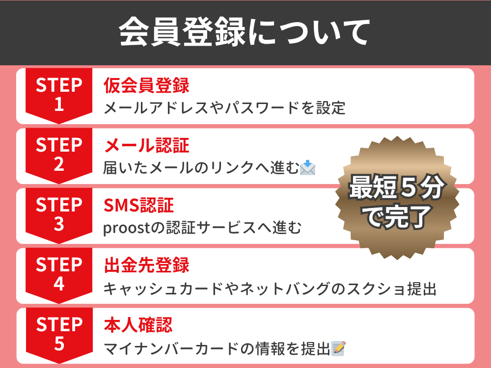次は本人確認の登録に進みます。外部の認証サービス[proost]を利用しますので安心して認証ができます。