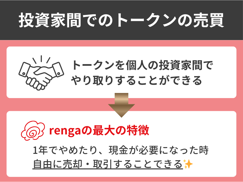 トークンを個人の投資家間でやり取りすることができるのがrengaの大きな特徴です。