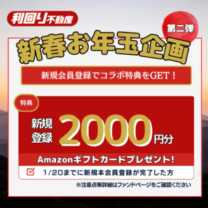 【利回り不動産】お年玉キャンペーン開催!全会員1万円投資で突撃!新規は9,000円投資でOK!