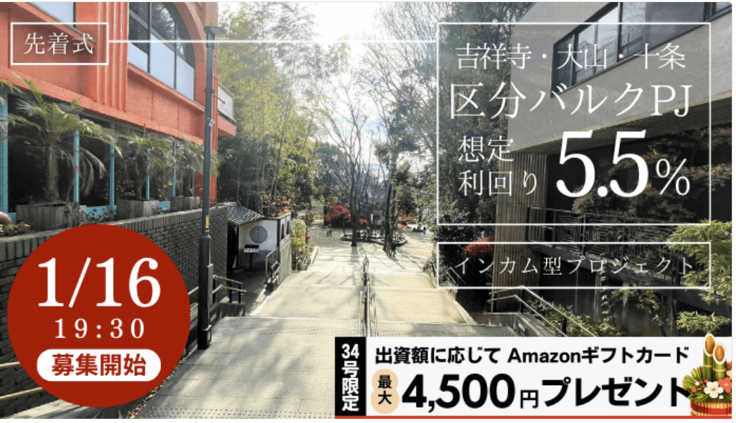 今回の34号ファンドはリノベーションをする案件ではないので、早期償還や上振れは期待しづらいと思っていますがもしかしたらいいことがあるかもしれませんね?