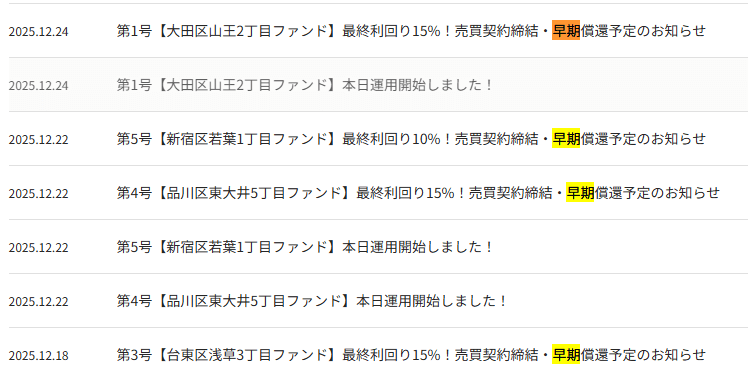 それに加えて、すでに4案件が早期償還が決定して利回りが上振れしております。