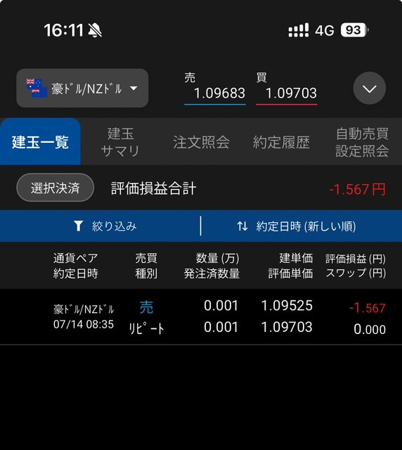 自分は松井証券のFXサイトと動画を参考に「豪ドル/NZドル(=通称オージーキウイ)」の通貨ペアの「ハーフ&ハーフ」戦略をもとにやってみました。]