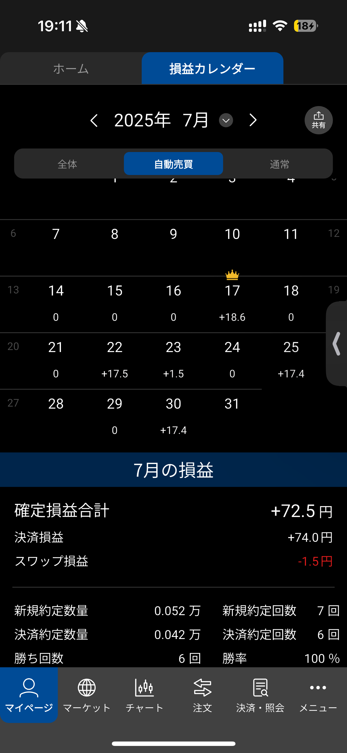 しかし松井証券のFX自動売買は1通貨(約100円)から自動売買ができるのはめちゃめちゃいいなって思いました。
