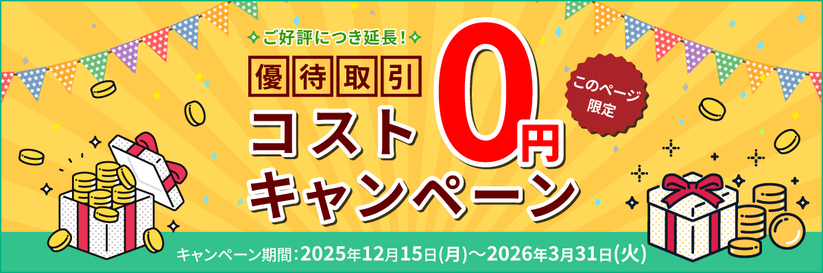 今だけ、専用コード入力で3月までの優待クロス注文の取引手数料が完全無料になるキャンペーンを開催中!
