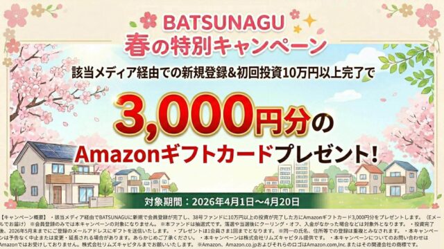 - 【4月最新】BATSUNAGU(バツナグ)のお得なキャンペーン!投資経験者が語る少額クラファンの魅力 2026年4月12日