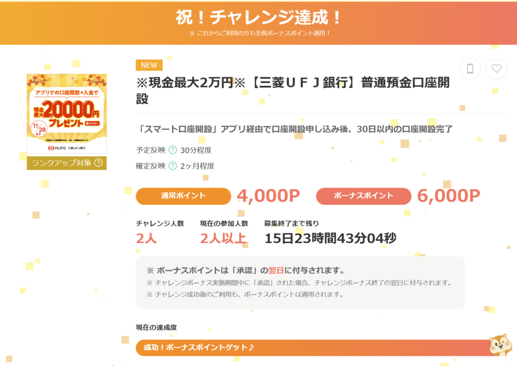 - 三菱UFJ銀行公式特典で翌月末の残高10万円で2万円