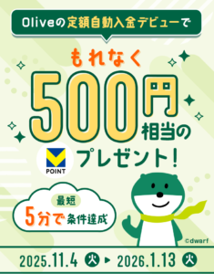 2025年10月31日までに、Oliveの定額自動入金を一度も契約したことがない方は過去開設済みでも参加可能!